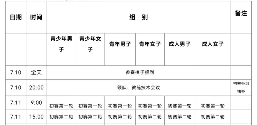 备注:根据实际报名情况,如有更改以比赛前一天通知为准。