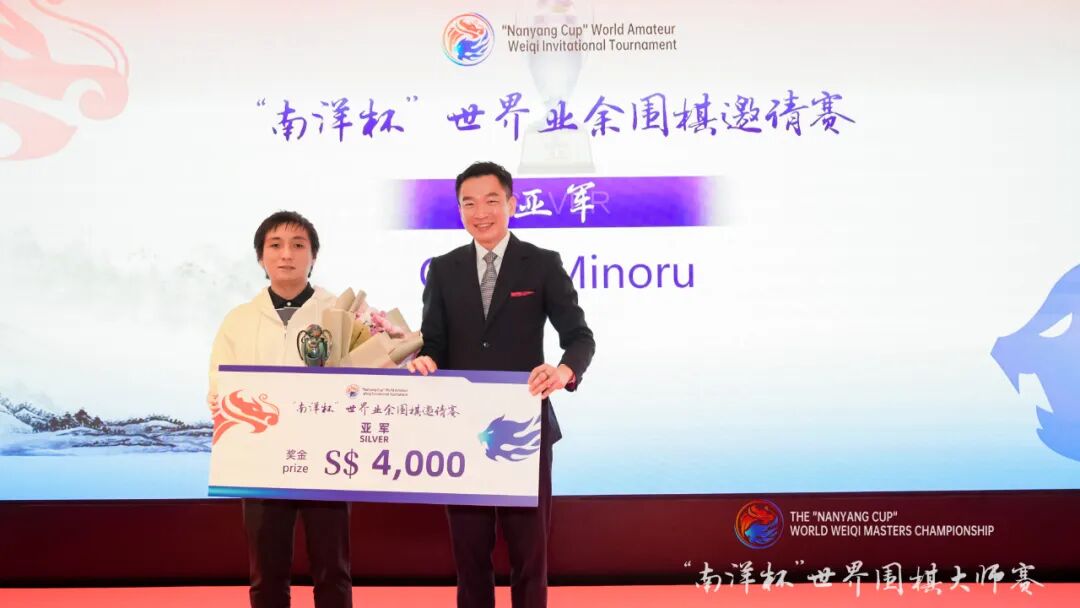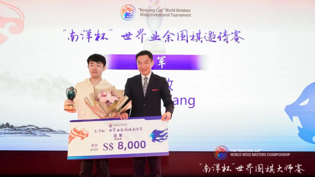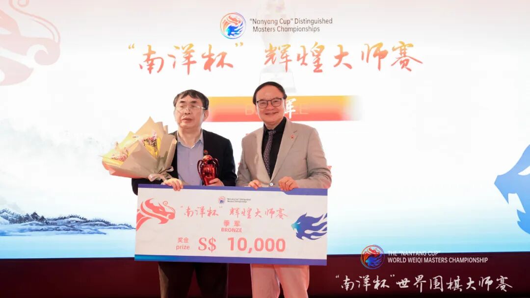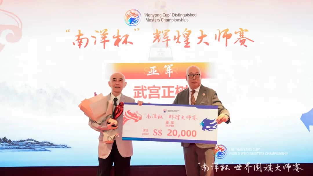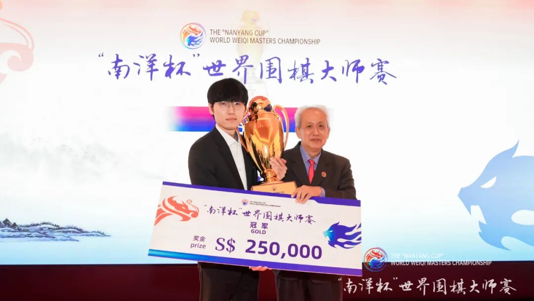 3月1日,南洋杯世界围棋大师赛颁奖典礼在新加坡文华东方酒店举行。新加坡高级政务次长蔡瑞隆、中国驻新加坡大使曹忠明、中国围棋协会主席常昊、新加坡围棋协会会长陈丁川、中国围棋协会副主席熊方军、新加坡前国会议员成汉通、新加坡南洋理工大学副校长刘宏、中国驻新加坡大使馆参赞秦文等领导嘉宾出席颁奖典礼,为南洋杯世界围棋大师赛冠亚军申真谞九段、王星昊九段,南洋杯辉煌大师赛冠亚季军曹薰铉九段、武宫正树九段、聂卫平九段,南洋杯世界业余围棋邀请赛冠亚军马天放、大关稔等棋手颁奖。