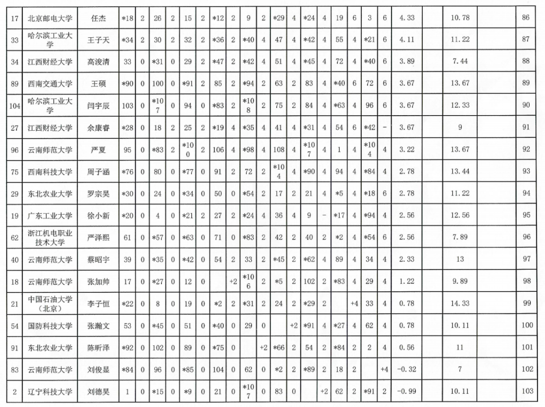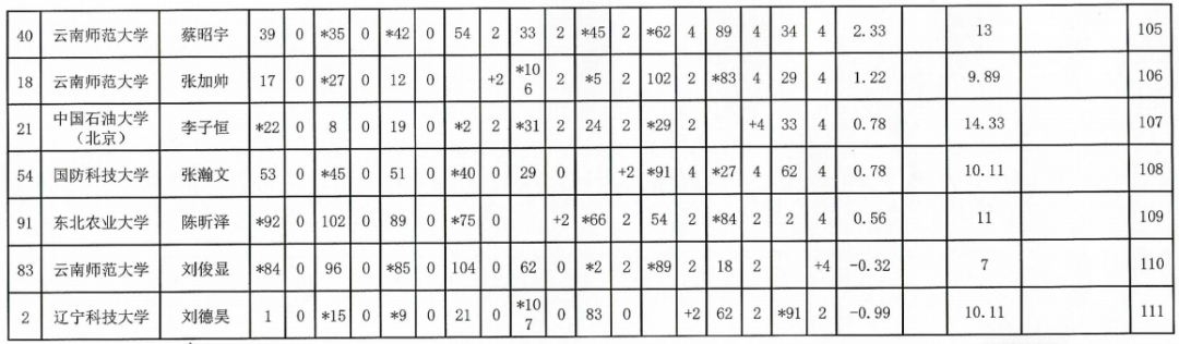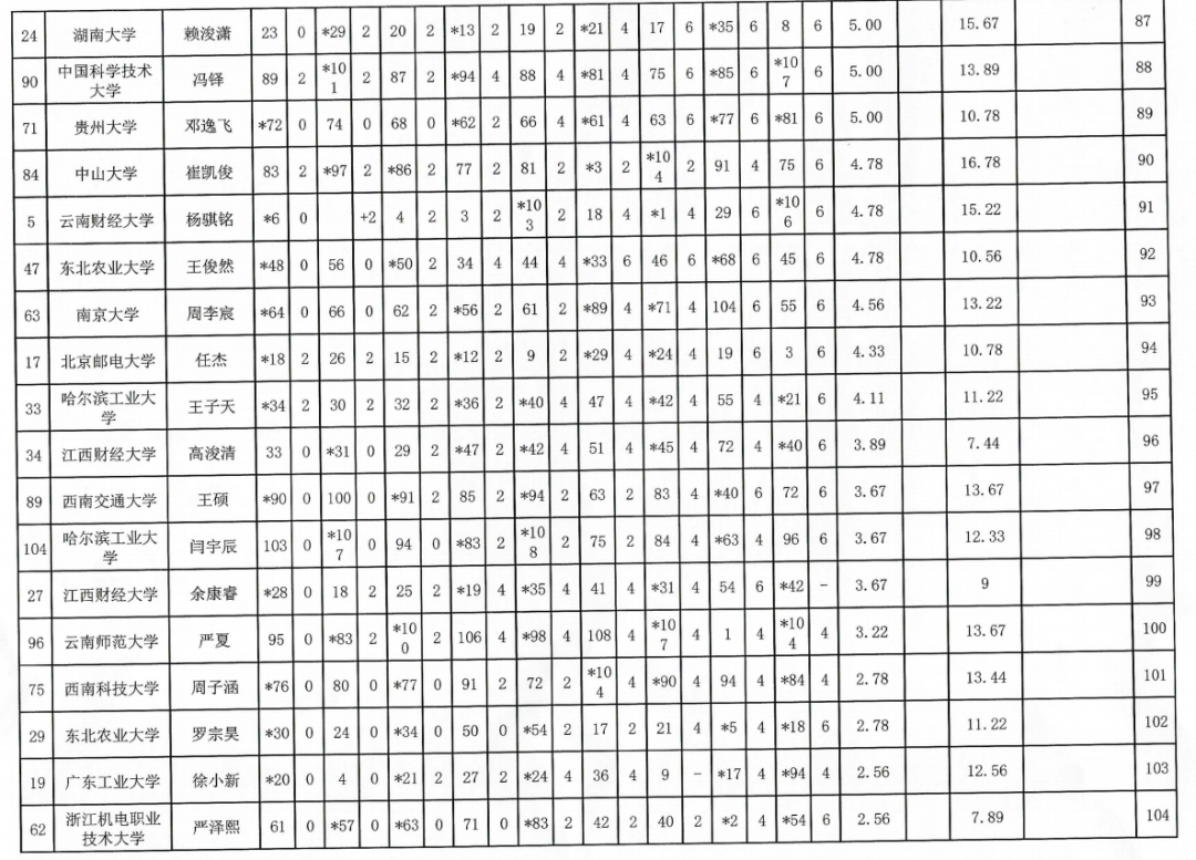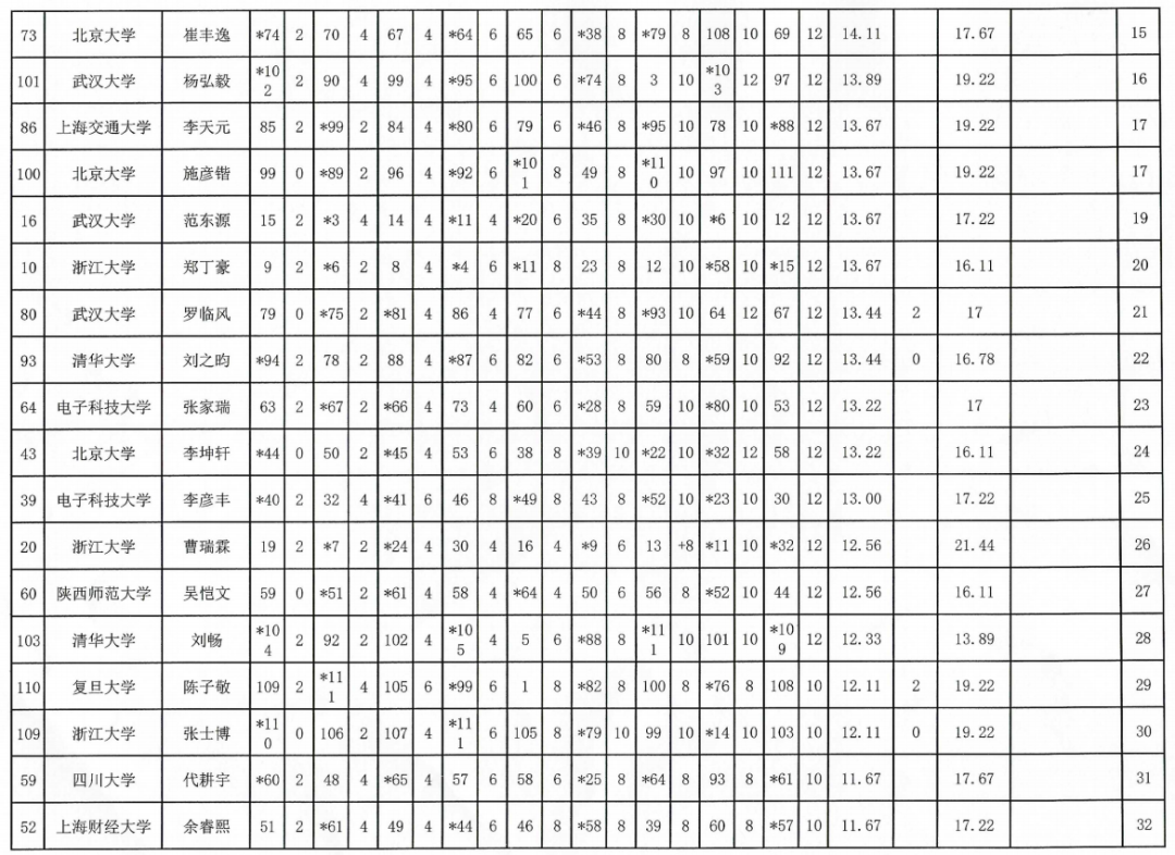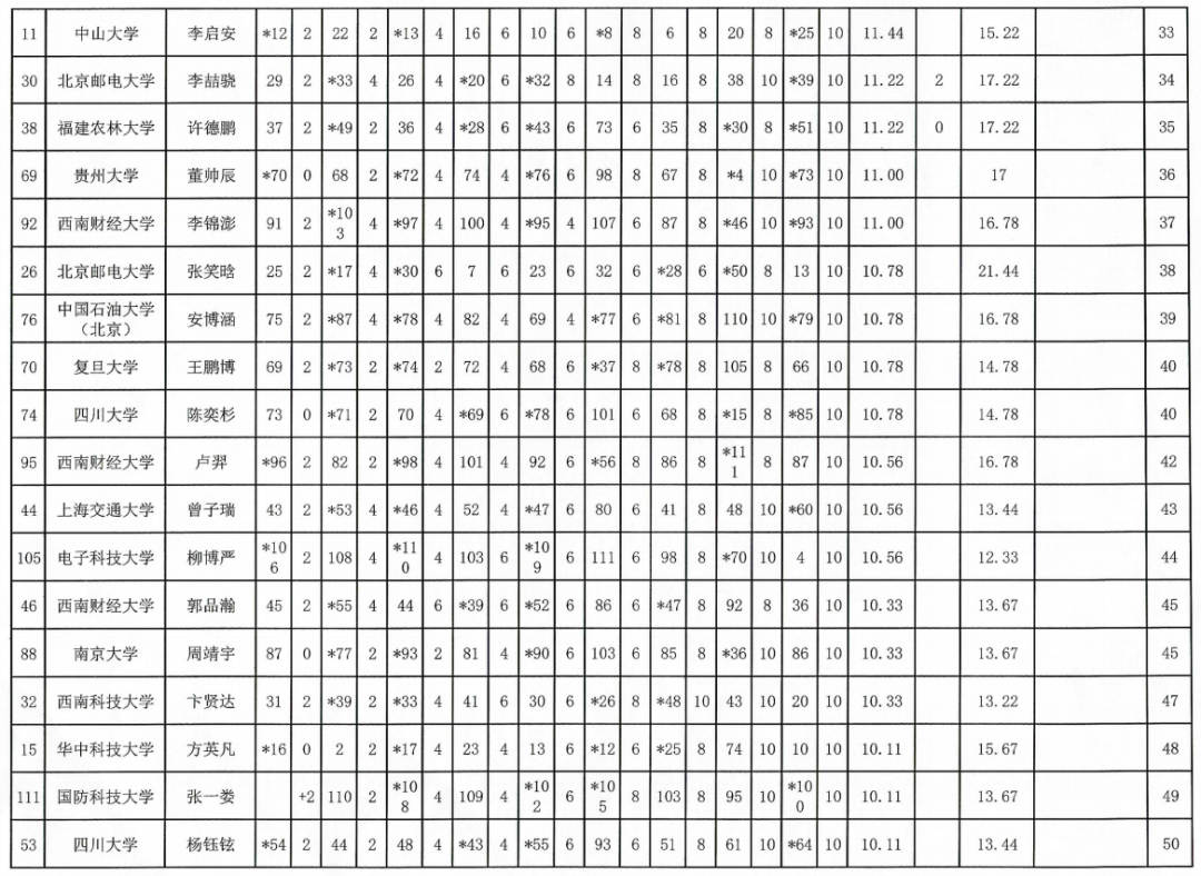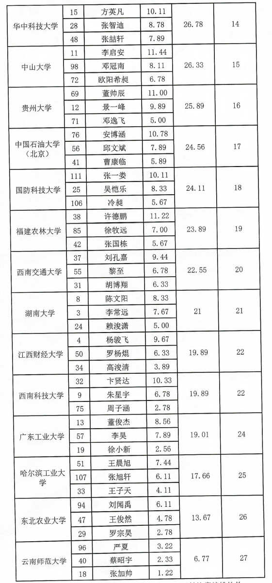 2024年“应氏杯”全国大学生围棋锦标赛成绩表
