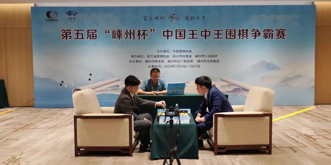 围甲浙江队队员蒋其润八段和嵊州籍女棋手储可儿三段在中国围棋协会官方账号直播了今天的对局。国家围棋队总教练俞斌九段、李轩豪九段先后来到直播间与嘉宾和棋迷互动。参与互动的幸运棋迷获得了赛事文创水杯以及蒋其润所著《屠龙决》。嵊州籍世界冠军马晓春九段与嵊州籍女棋手张越然二段为现场棋迷进行了大盘讲解。