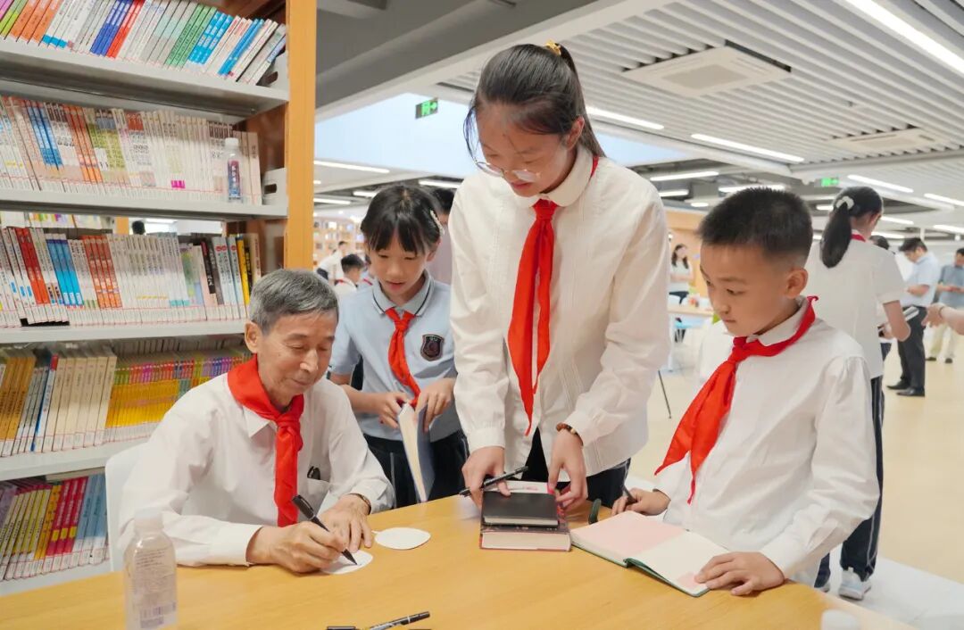 今天下午3点,2024乐居乐杯中国围棋甲级联赛围棋进校园活动走进浙江长兴县华盛达实验学校。中国围棋协会名誉主席王汝南,中国围棋协会副秘书长、职业竞赛部部长刘菁,职业棋手丁波五段、李亮五段、蓝天四段、郭闻潮五段、汪涛六段一起走进校园,与30多名小棋手互动、下指导棋。活动开始前,学生们早早来到校门口等待,热情地为嘉宾、棋手们戴上了红领巾,以少先队员的方式迎接他们的到来,青春洋溢、充满朝气。指导棋期间,小棋手们认真对弈,向各位职业棋手学习,有些小棋手表示:“我今天的目标就是珍惜和老师下棋的机会,向各位老师认真学习,能吃掉老师一颗棋子就很好了。”