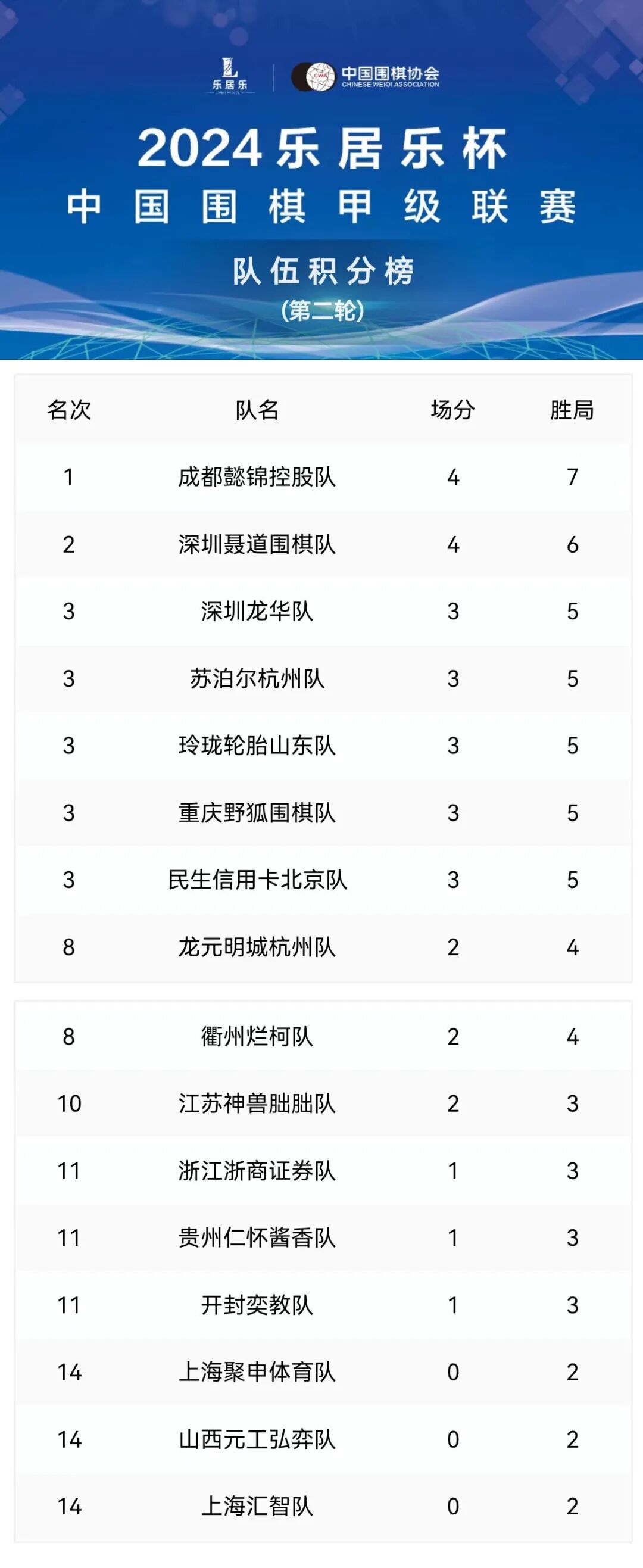 乐居乐杯中国围棋甲级联赛第二轮成都懿锦控股队大胜暂列榜首