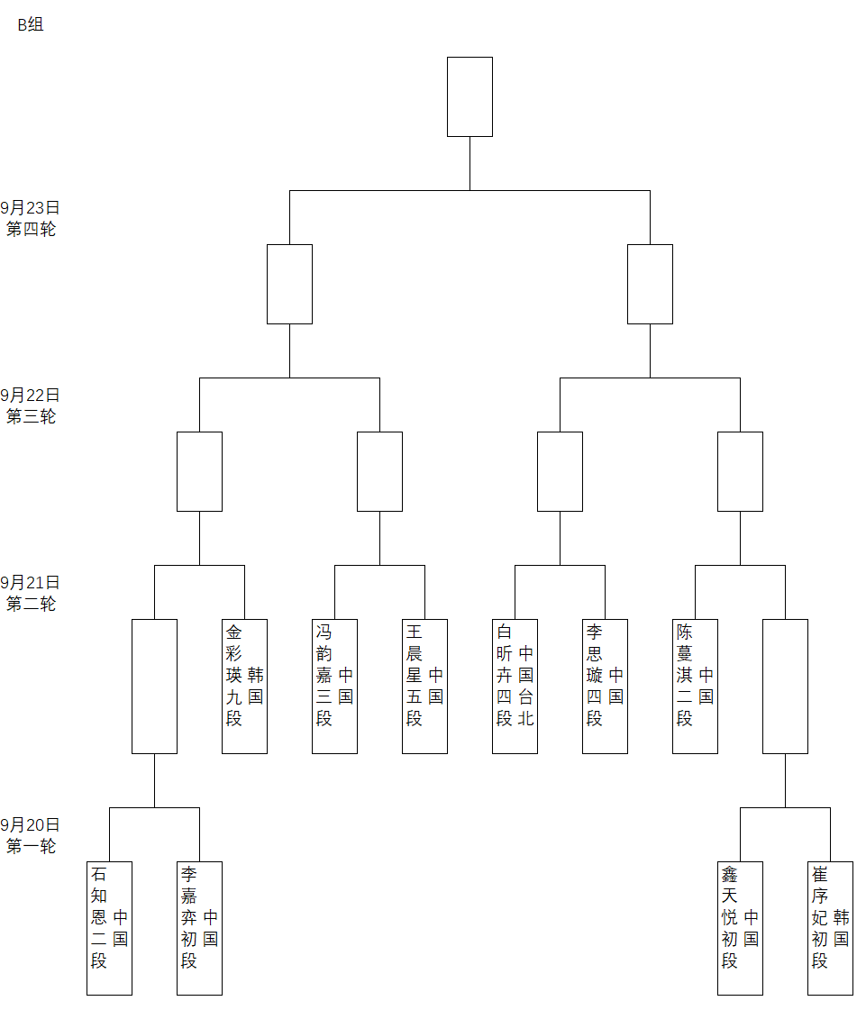 9月20-23日,第七届吴清源杯世界女子围棋公开赛国际预选赛将在福建省福州市举行,分组已定。国际预选赛报到及比赛地点:福州贵安君豪大饭店(福建省福州市连江县潘渡镇仁丰社区世纪金源大道16-1号)。比赛用时为每方2小时后5次1分钟读秒,每个比赛日北京时间中午12时开赛。预选赛分为10个小组,各组第一名晋级本赛。本赛共24个名额,其他14个名额分配为:上届冠亚军,中国4人、日本2人、韩国2人、中国台北1人、欧洲1人、北美洲1人、外卡1人。根据上届成绩确定8人为本赛种子选手:中国3人、日本3人、韩国2人。本赛产生两名人选进入决赛。本赛至决赛将于2024年11月下旬在福建省福州市举行。上届冠亚军崔精九段、藤泽里菜七段;中国的周泓余七段、罗楚玥六段、吴依铭六段、李赫五段;日本的上野爱咲美五段、上野梨纱三段,韩国金恩持九段,金珉舒三段;中国台北的卢钰桦五段;欧洲的黎婷初段;北美人选及外卡待定。