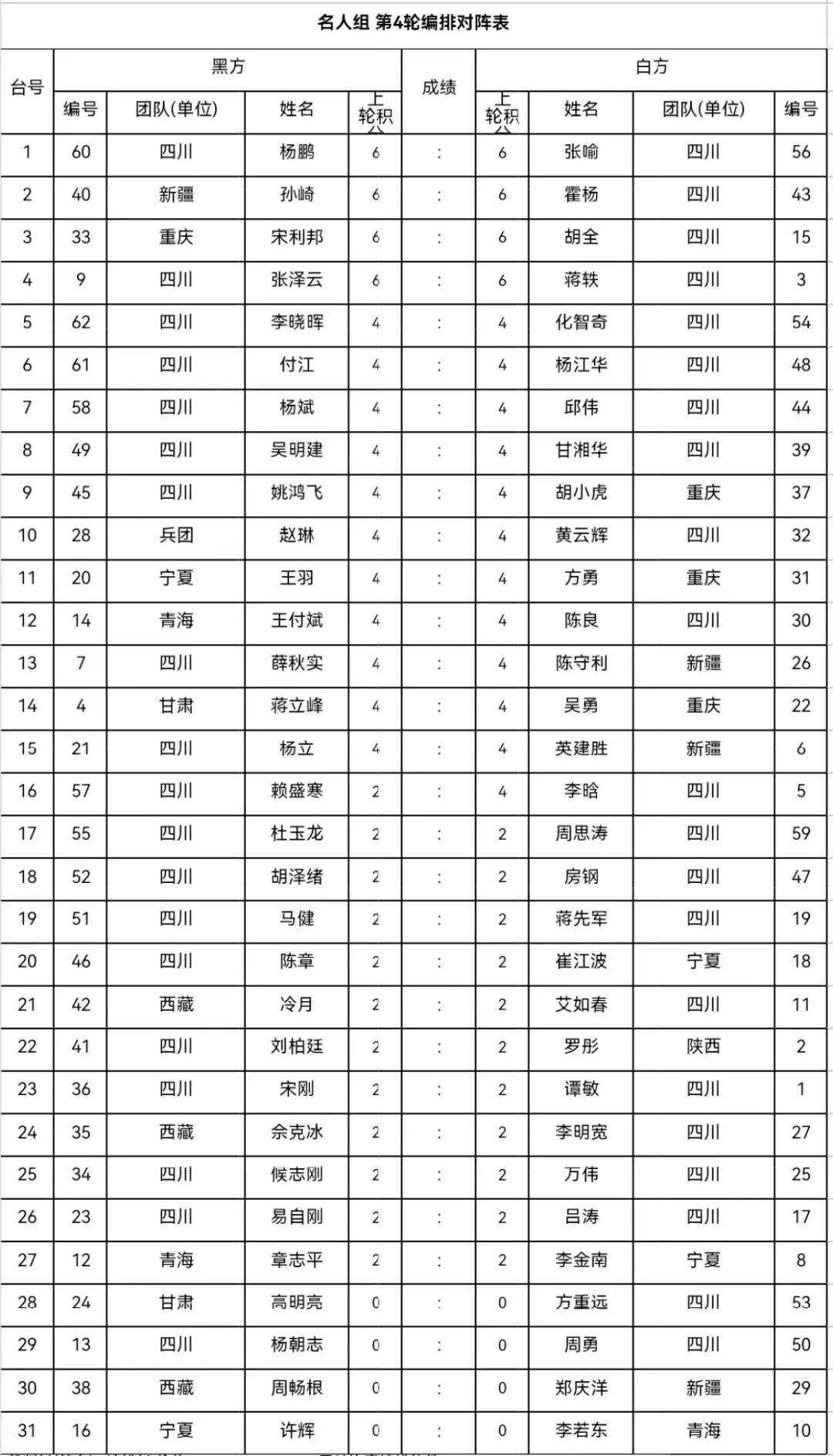西部赛区覆盖8个省级单位,共有162名棋手参赛,其中6段以上(含)44人,7段4人,8段1人。名手组50人参赛,奖励前24名,颁发奖金及荣誉证书;参赛5段棋手达到50人,冠军授予业余6段证书(可顺延至前8名);前10名参加总决赛(如果放弃比赛,按照排名依次递补)。名师组50人参赛,奖励前16名,颁发奖金及荣誉证书;参赛4段棋手达到30人,冠军授予业余5段证书(可顺延至前8名);前10名参加总决赛(如果放弃比赛,按照排名依次递补)。名人组62人参赛,奖励前16名,颁发奖金及荣誉证书;参赛4段棋手达到30人,冠军授予业余5段证书(可顺延至前8名);前10名参加总决赛(如果放弃比赛,按照排名依次递补)。三个组均为7轮比赛。第7轮比赛将于9月2日上午结束,届时举行颁奖仪式暨闭幕式。