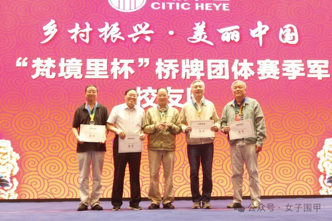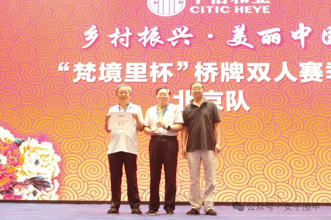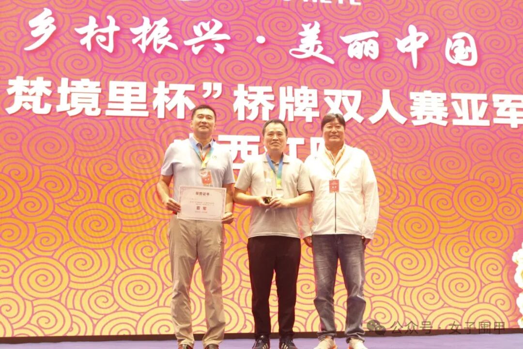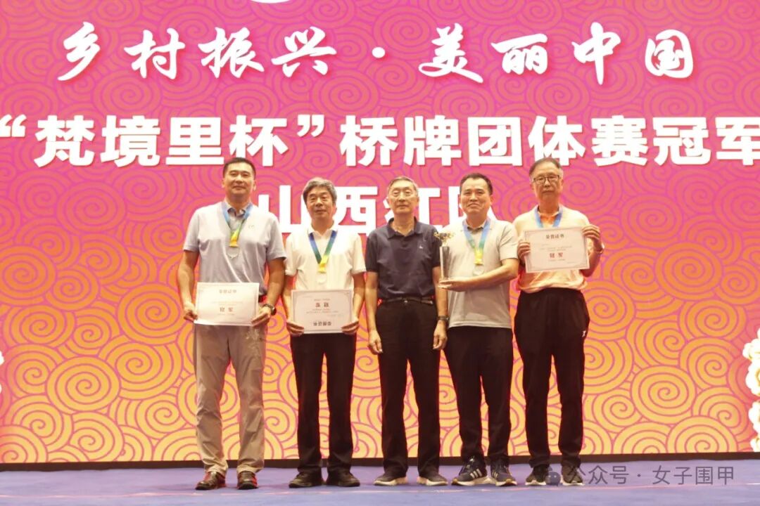 进入颁奖环节,获得“梵境里杯”桥牌赛双人赛前三名的依次是:山西红队1队、山西红队2队、北京队;获得桥牌团体赛前三名的依次是:校友队、北京队、山西红队。