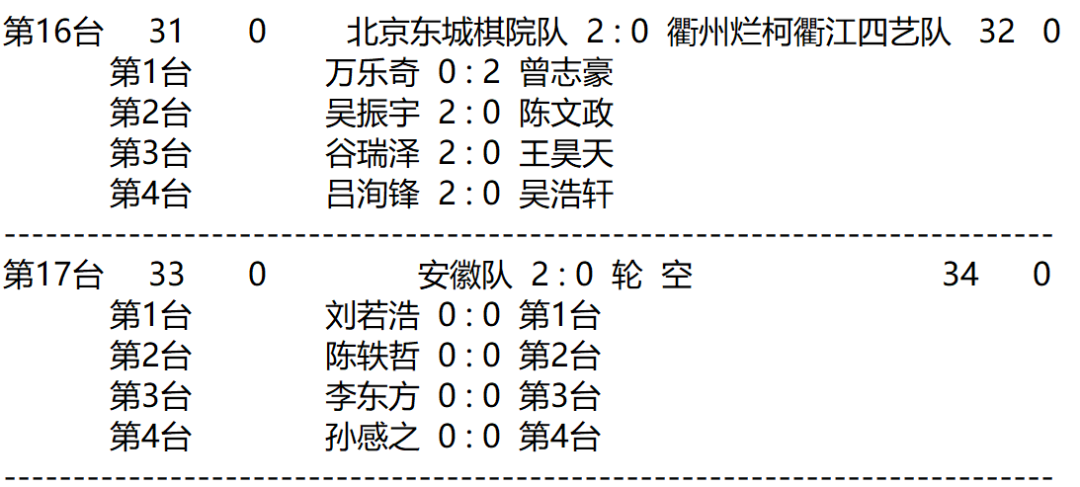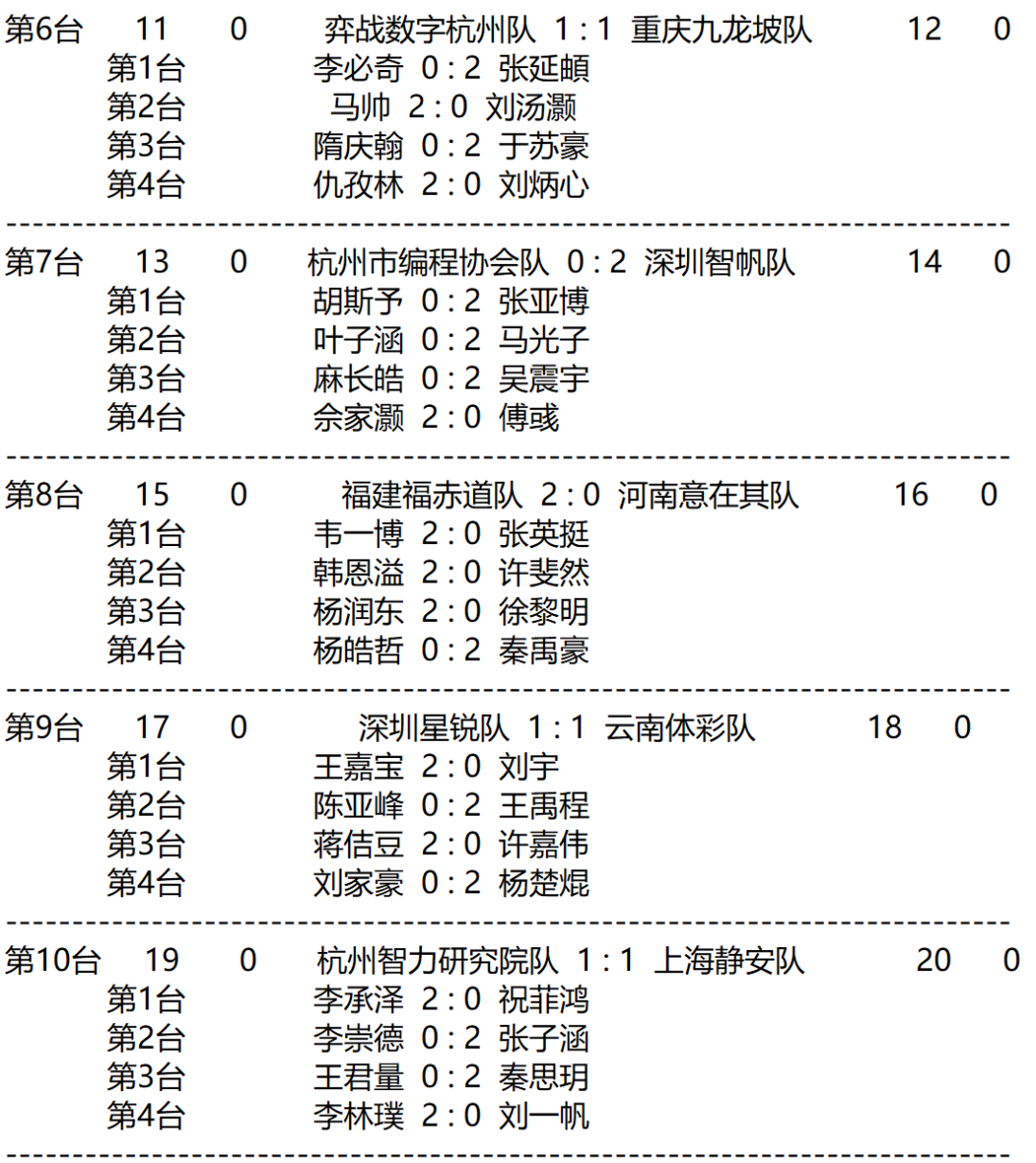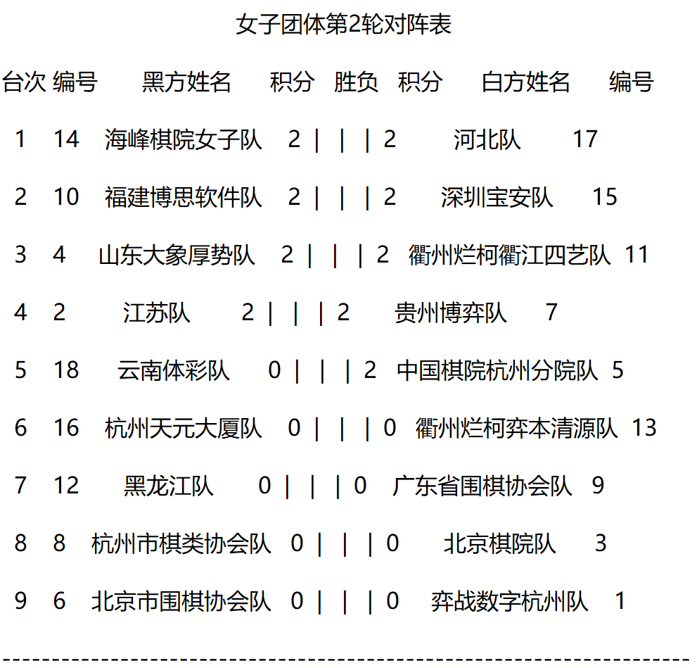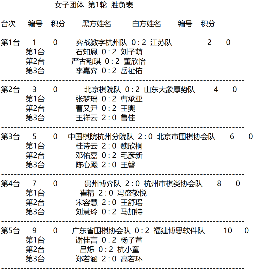 女子团体赛第1轮赛果: