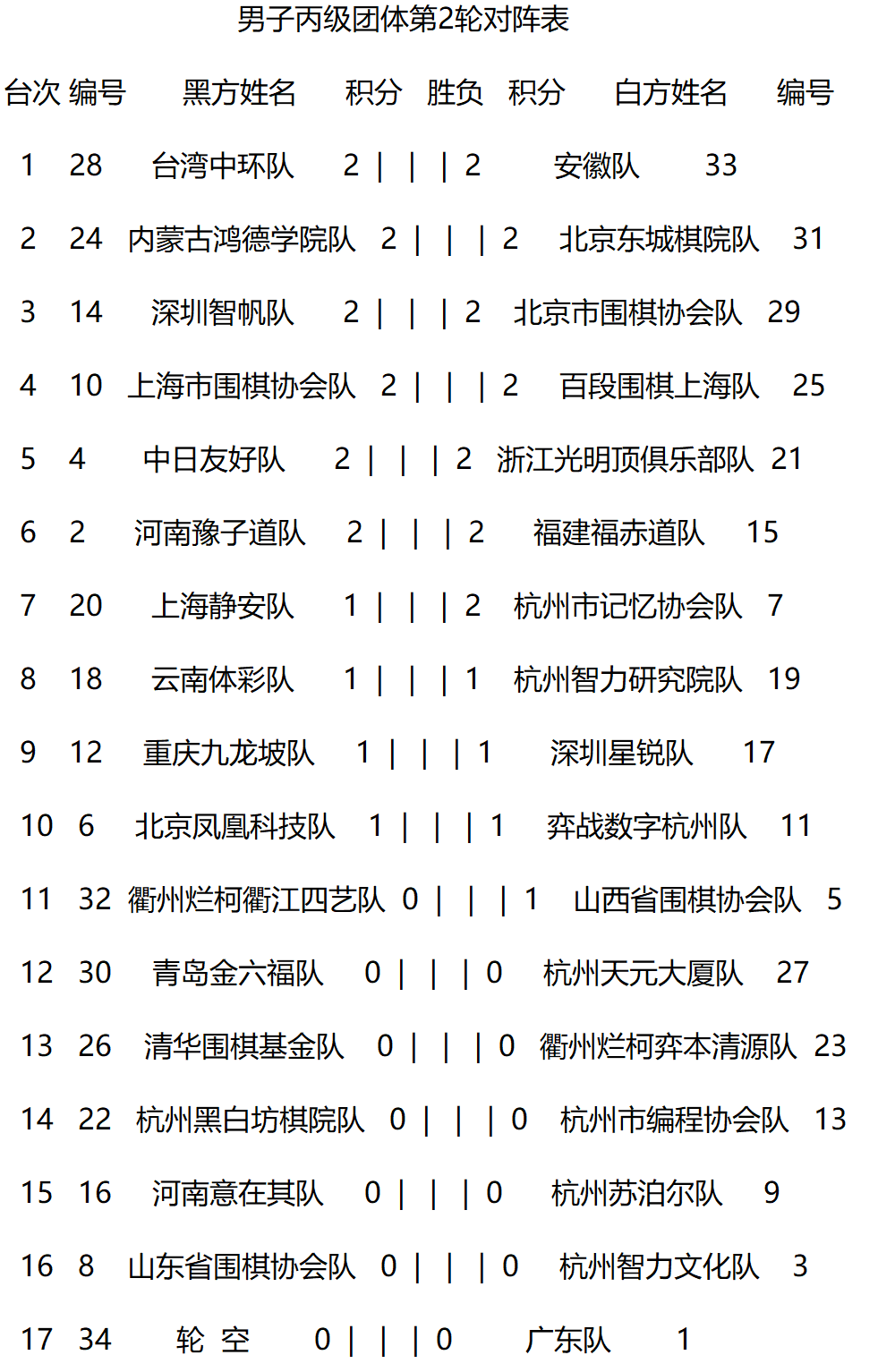 男子丙级团体赛第2轮对阵: