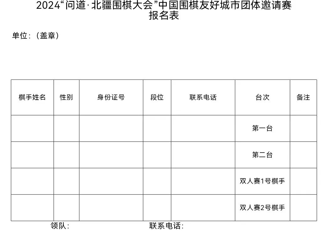 2024“问道·北疆围棋大会”中国围棋友好城市团体邀请赛报名表