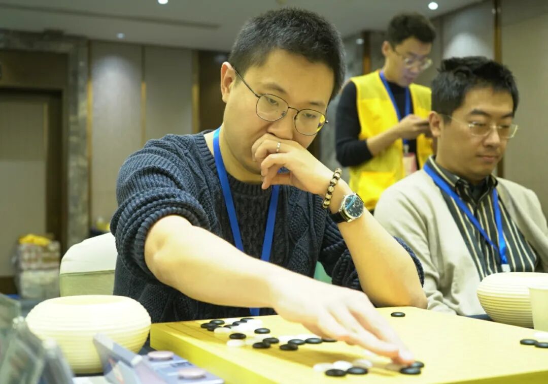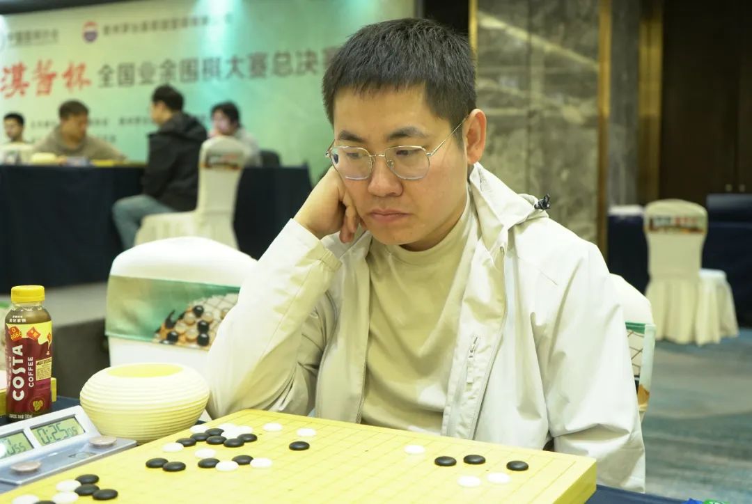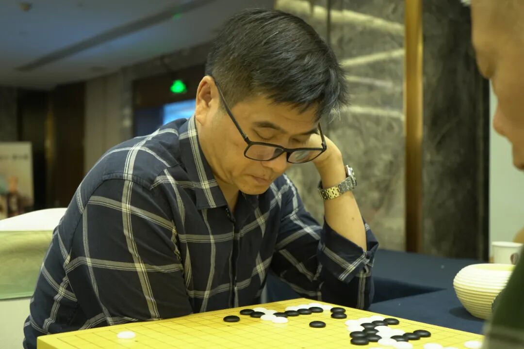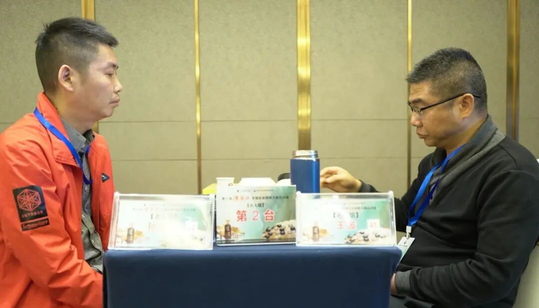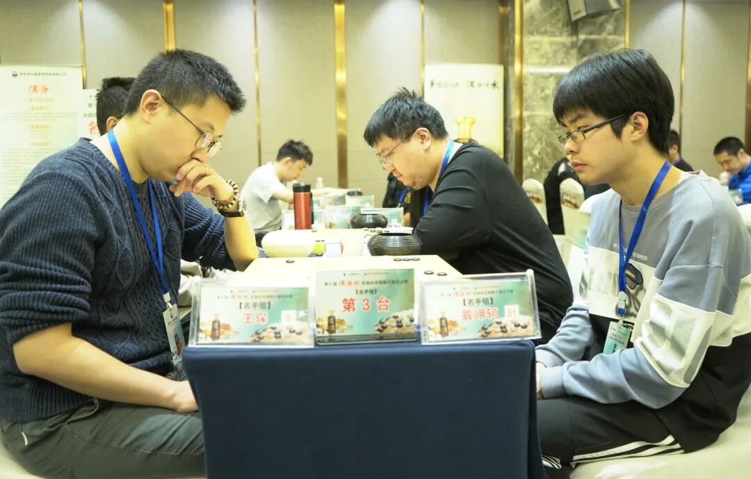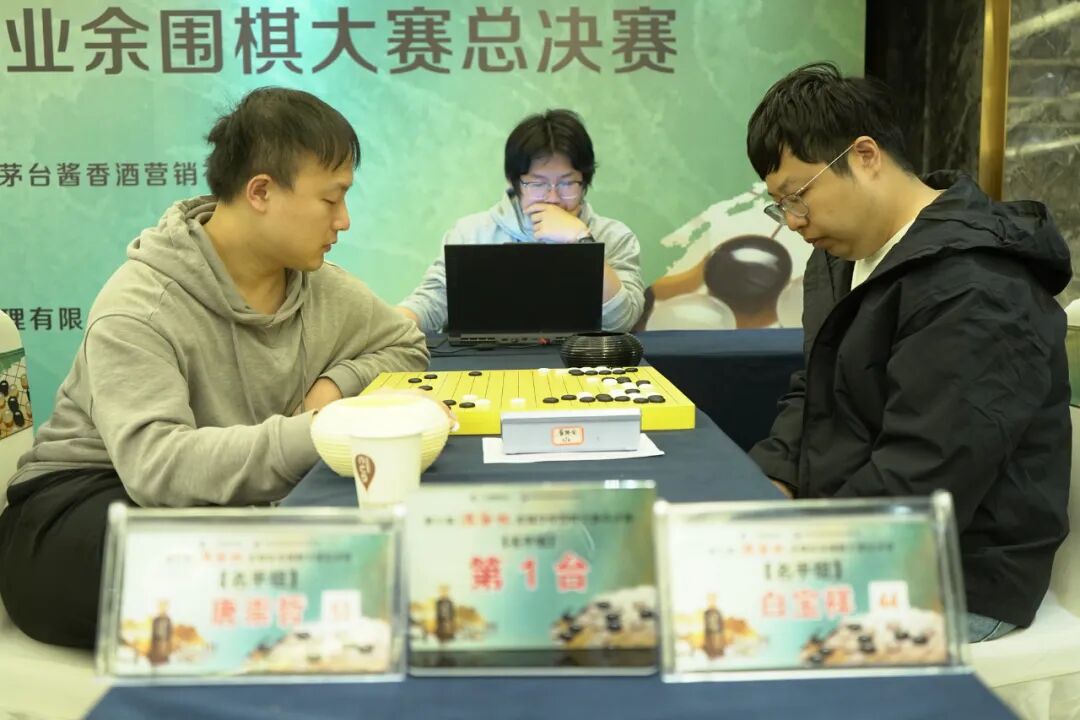 唐崇哲(左)力克白宝祥夺冠经过三天激战,各组在今天上午迎来最后一轮比赛。名手组14位业余8段汇聚一堂,竞争激烈。第9轮比赛前,全场仅有的两位7胜1负的选手相遇,结果唐崇哲力克白宝祥,夺得冠军。唐崇哲在今年的南部赛区7战全胜夺得分站赛冠军,总决赛8胜1负,通算15胜1负,总冠军含金量极高。白宝祥获得亚军。周振宇在最后一轮战胜何鑫后获得季军。