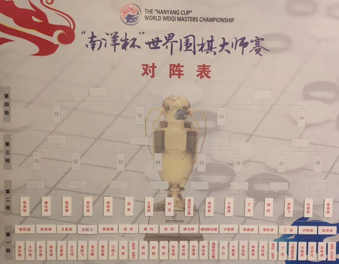 11月2日,“南洋杯”世界围棋大师赛32强赛在成都世纪城天堂洲际大饭店结束。党毅飞、柯洁、申真谞、许皓鋐、福冈航太朗、曾富康等获胜晋级16强。赛后,柯洁、李钦诚、陈亦函接受了采访。16强赛将于明天举行,中国围棋协会将直播连笑对申真谞、丁浩对卞相壹的焦点战。首轮比赛中,中国队13人出场,取得10胜3负的佳绩;韩国队3胜3负,日本队1胜4负,中国台北队1胜1负。新加坡13岁少年陈亦函不敌韩国世界冠军申旻埈。马来西亚的曾富康战胜北美代表江鸣久,成为首位晋级世界大赛16强的马来西亚乃至东南亚棋手。中国的周泓余、韩国的崔精、日本的上野爱咲美均告负,女棋手在首轮比赛全部出局。