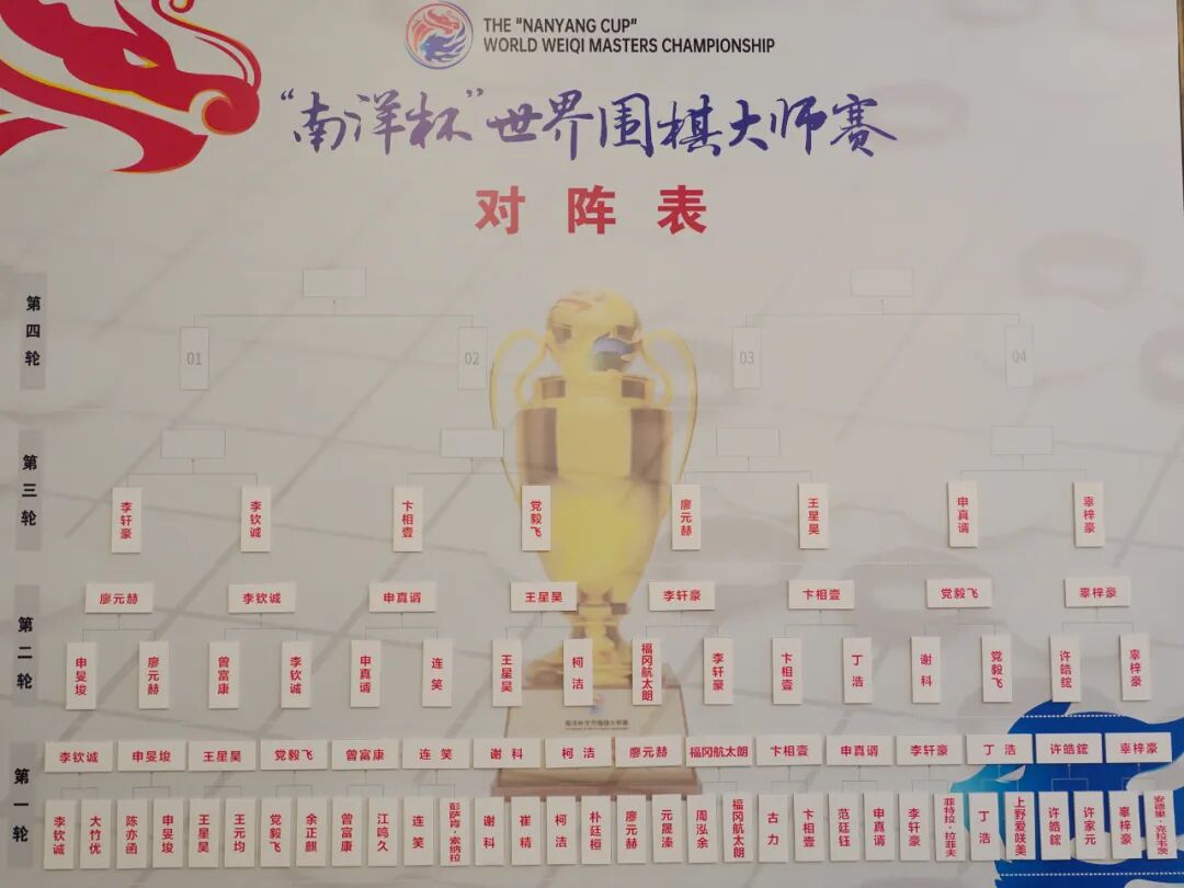 11月3日,“南洋杯”世界围棋大师赛16强赛在成都世纪城天堂洲际大饭店结束。六位中国棋手党毅飞、辜梓豪、李轩豪、王星昊、廖元赫、李钦诚和两位韩国棋手申真谞、卞相壹战胜各自对手晋级8强。8强赛将于5日举行,中国围棋协会将直播辜梓豪对申真谞、党毅飞对卞相壹的焦点战。