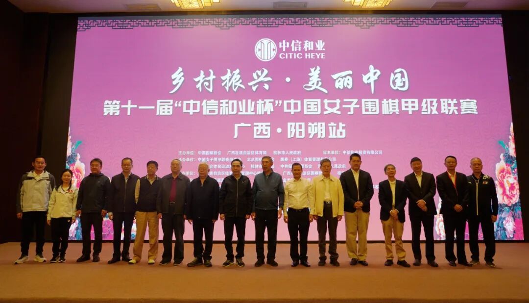 明天上午9:30将举行希望教室指导棋活动,下午4点举行颁奖仪式暨闭幕式。今天开赛前举行了开棋仪式。中信集团原党委书记、董事长、中信改革发展研究基金会理事长孔丹,广东省委原副书记、原省长朱小丹,国家发改委原副主任杜鹰,中国乡村发展志愿服务促进会会长刘永富,财政部原部长助理、现中国注册会计师协会会长赵鸣骥,中国围棋协会主席常昊,中国围棋协会名誉主席王汝南,国家棋牌运动管理中心原主任、中国棋院原院长刘思明,国家围棋队总教练、北京围棋基金会理事长俞斌,中国围棋协会副秘书长刘菁,中国女子围棋甲级联赛组委会执行主任马小曼;广西壮族自治区农业农村厅党组副书记、副厅长吴朝晖,广西壮族自治区体育局副局长甘永辉,桂林市委常委,常务副市长蒋春华,阳朔县人民政府县长 黄小雪,桂林市体育局副局长莫智斌,阳朔县人民政府副县长吴勇等领导嘉宾,参赛棋手及众多媒体记者出席了仪式。