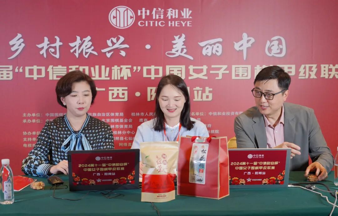 今天下午13:30,刘世振七段、王锐5段直播解说了成都银行队与广东围棋协会队的焦点战——罗楚玥VS黄子萍的对局。阳朔当地为棋迷们准备了当地兴平手工松花糖、七仙峰红茶作为奖品,女子围甲组委会也准备了棋手签名折扇作为奖品。