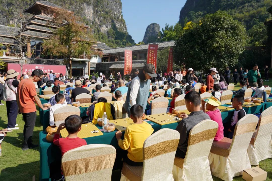 捐建仪式后,王汝南八段、俞斌九段、刘菁八段、於之莹八段 、周泓余七段 、陆敏全六段 、吴依铭六段 、李赫六段 、高星五段 、陈一鸣四段 、潘阳四段与99名阳朔本地围棋爱好者下起了指导棋。桂林市政府特定99盘对局,寓意联赛能长长久久的办下去。