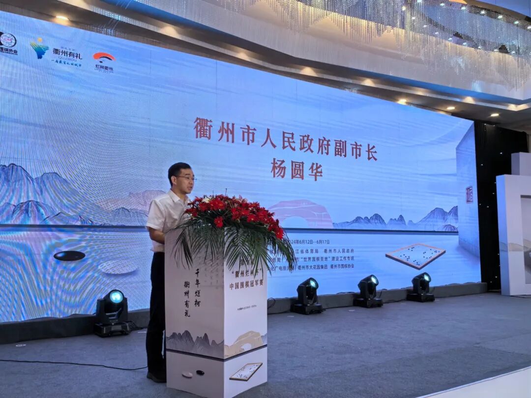 “衢州·烂柯杯”中国围棋冠军赛创办于2006年,一段时间内是国内冠军奖金最高的职业围棋比赛。如今迎来了第十届,往届冠军纷纷录制视频祝福赛事迎来十年之庆。中国围棋协会副主席、浙江省围棋协会主席孙光明,浙江省体育局一级巡视员胡国平,衢州市人大常委会主任吴国升,衢州市人大副主任刘根宏,衢州市政府副市长杨圆华,衢州市政协副主席黄伟青等领导嘉宾,以及32位参赛棋手参加了开幕式。杨圆华、孙光明先后致辞。