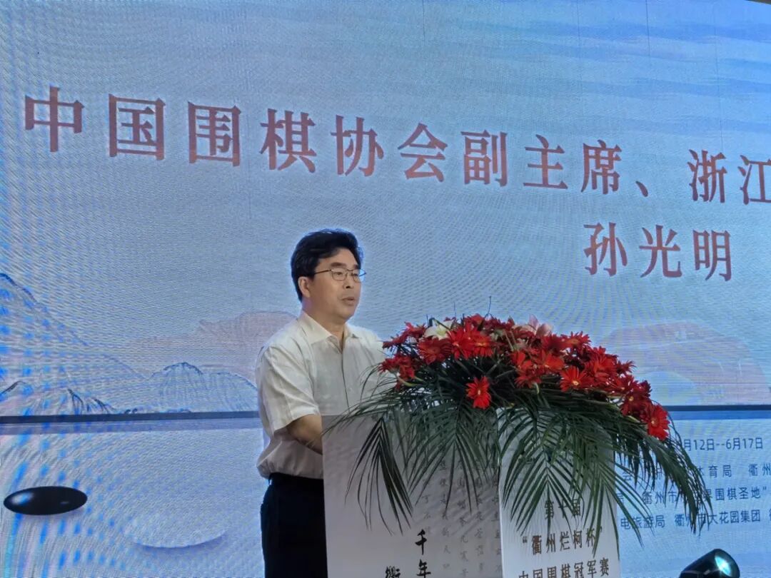 孙光明在致辞中说,近年来,衢州在高书记、徐市长为代表的市委市政府领导班子高度重视、亲自指挥下,全力推进“世界围棋圣地”建设,围棋事业蓬勃发展,成效显著:建成了全国首个国际围棋文化交流中心、首个国家围棋队地方集训基地;举办了“烂柯杯”世界围棋公开赛等重大赛事;连续4年组织国家围棋队选拔集训;承办世界青少年围棋论坛、中国围棋之乡联赛、全国围棋锦标赛等系列围棋赛事;实施衢州市全面推行新时代南孔学子“一文一武”专项行动,“文”即人人会围棋、善思维,极大推动了围棋运动普及推广;谋划打造“衢州烂柯”围棋职业梯队,成立国家青少年职业棋手训练基地。一系列举措有力促进了围棋运动的普及推广和围棋竞技水平的整体提升。