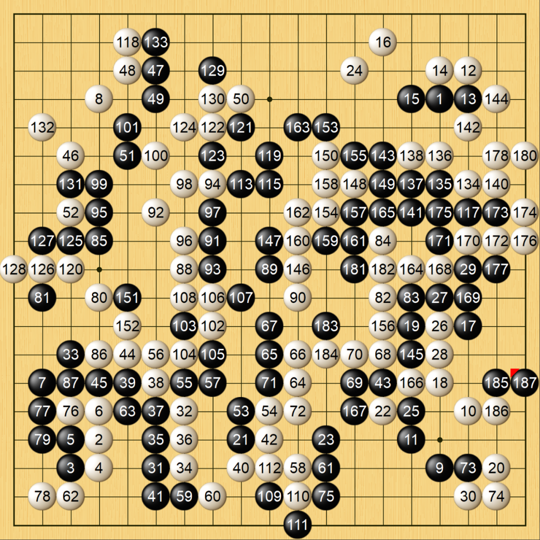 这盘棋党毅飞在序盘就不发挥,先是一步出人意料的“挖”掉了不少胜率,然后过于大度地让对方在左下角取得丰硕实地,棋局不到50手胜率就到了个位数。中盘时丁浩出现缓手,党毅飞有扳平局面的机会,可惜当时他的思路是杀棋而非收空,错过了几乎是唯一的机会。
