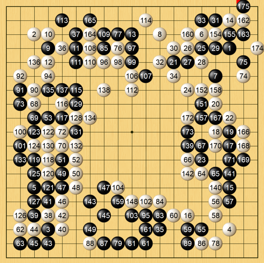 今天的比赛金明训执黑先行。许家元十分罕见地以两个三三开局。序盘时白棋占优,进入中盘后局势几经反复,黑白交替领先。当许家元抓住机会在棋盘下方制造出打劫时,白方胜率达到90%多,之后如果果断消劫将继续保持优势。可惜许家元未能判断清楚,输掉劫争后也输掉了比赛。
