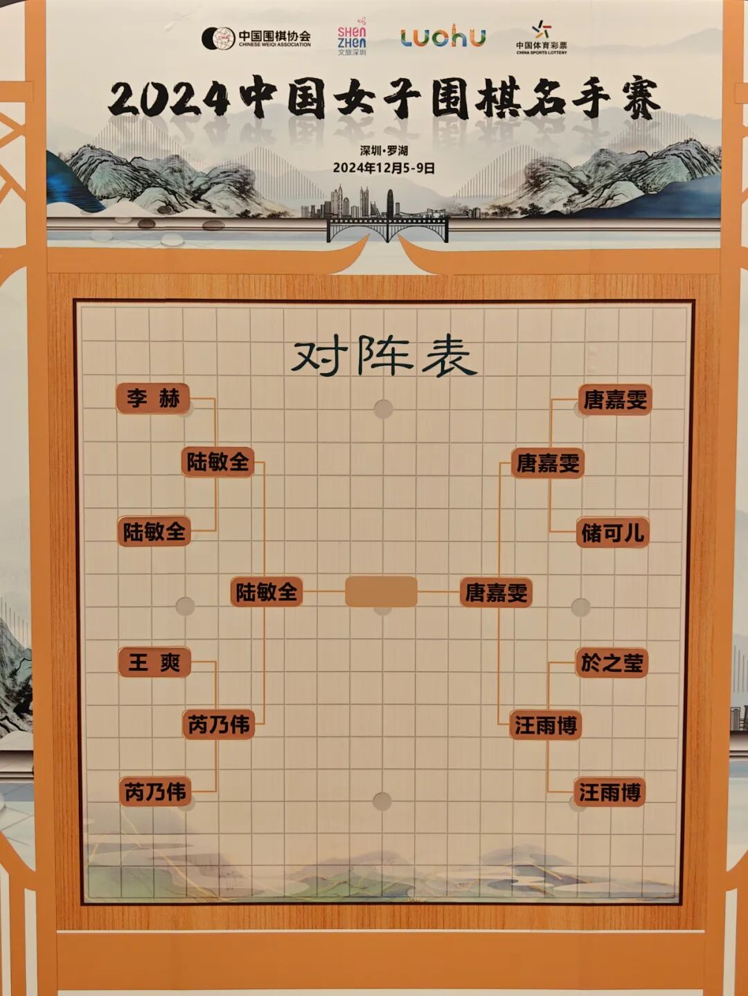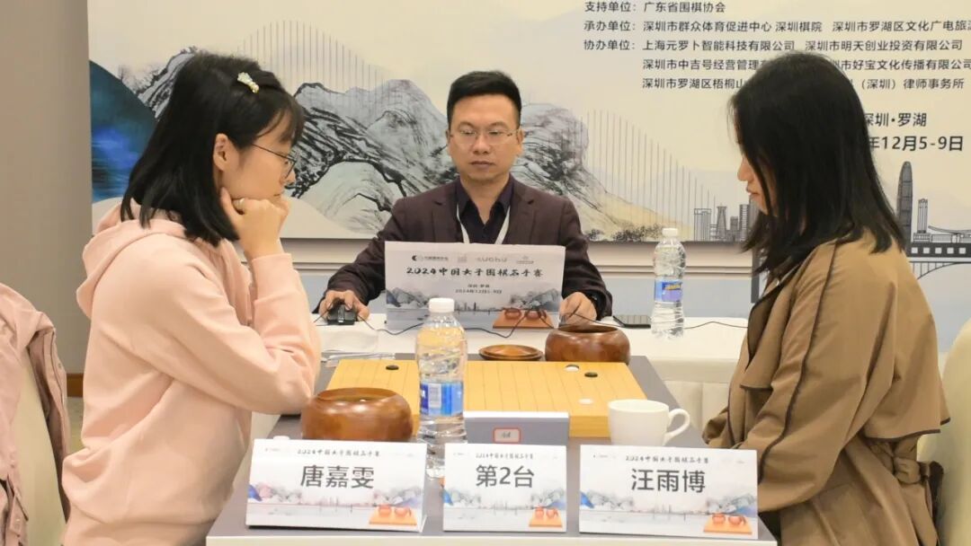 12月7日,2024中国女子围棋名手赛半决赛在深圳市罗湖区阳光酒店结束,唐嘉雯淘汰汪雨博,陆敏全战胜芮乃伟。唐嘉雯与陆敏全之间的决赛将于明天12:00开赛,13:00开始直播,14:00由李康六段与储可儿三段解说。上届亚军汪雨博执黑对阵唐嘉雯。经过长时间胶着后,唐嘉雯在右边的攻防战中取得上风,行棋至百余手后,白方胜率高达90%多。至228手,汪雨博中盘认输,唐嘉雯打入决赛。