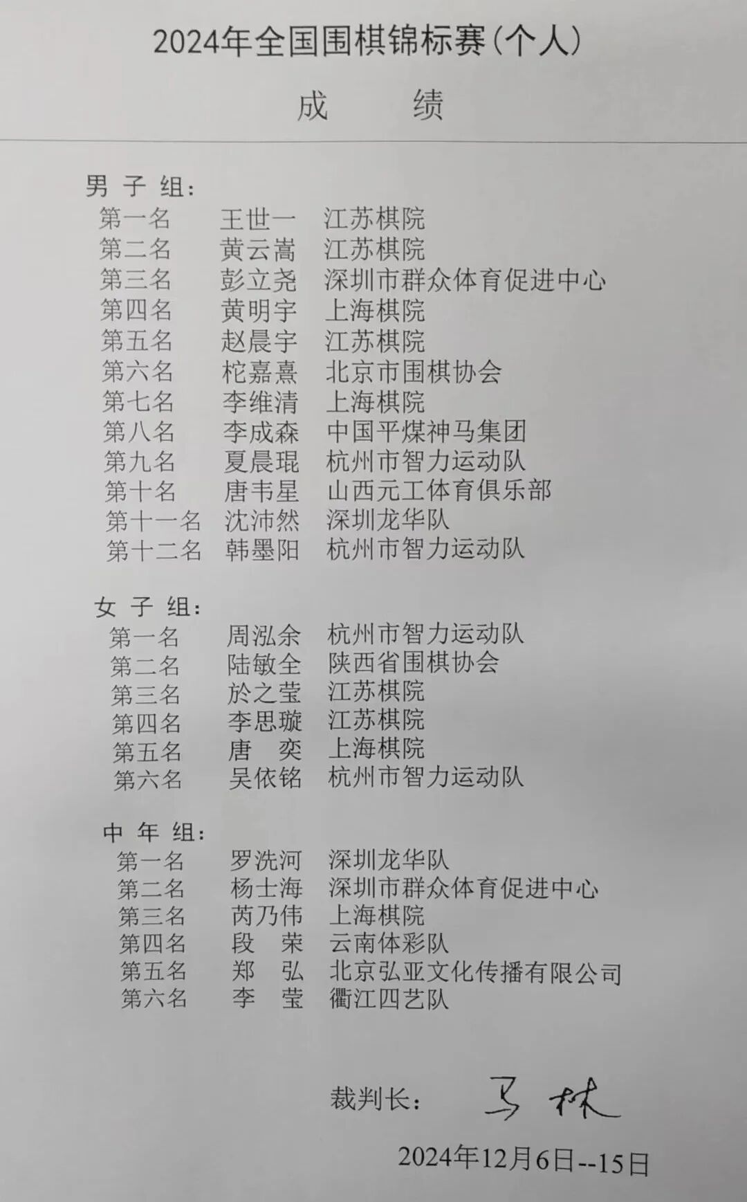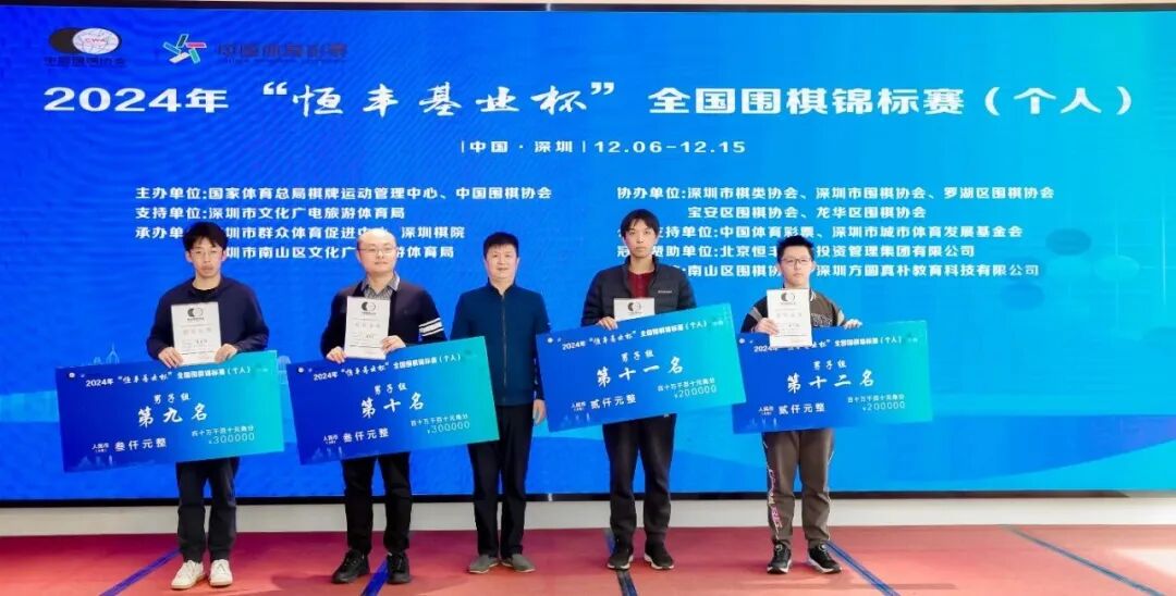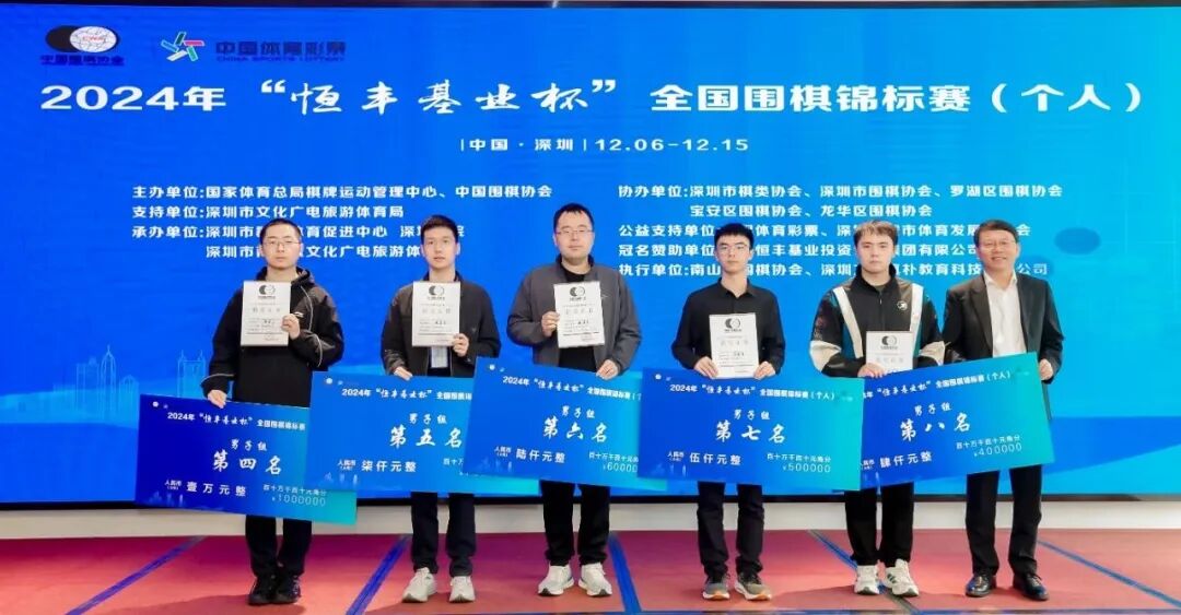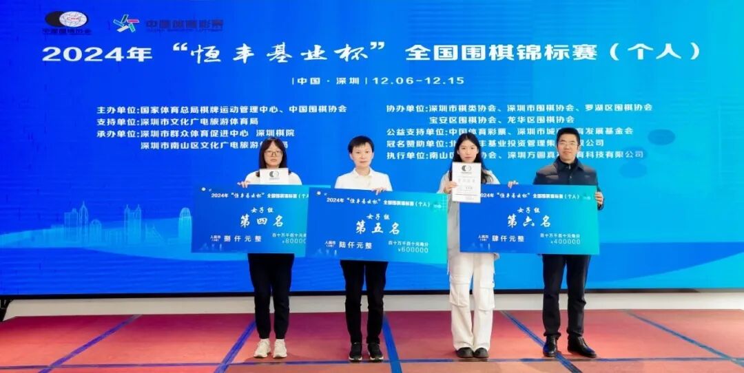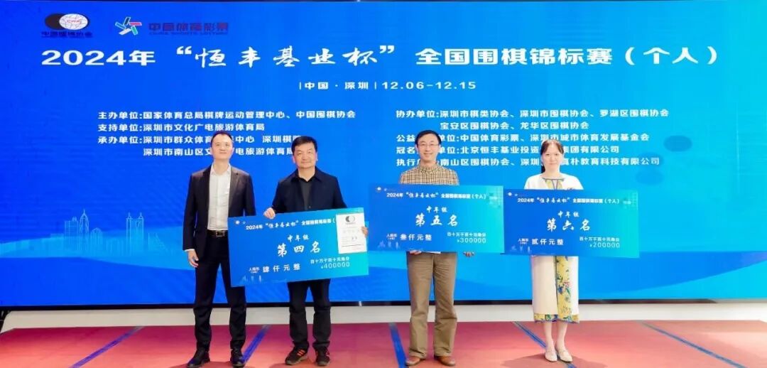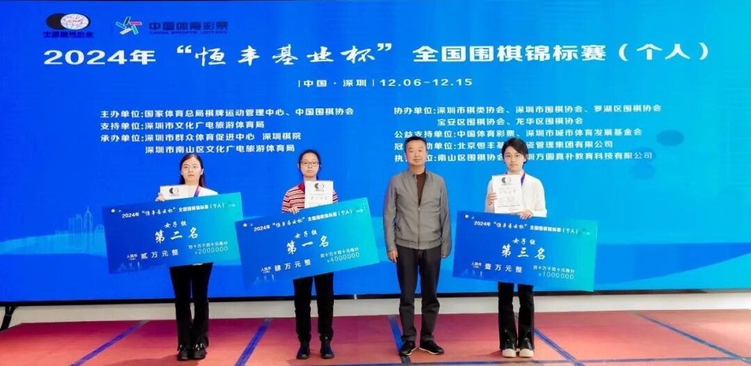 12月15日,2024年“恒丰基业杯”全国围棋锦标赛(个人)在深圳市海德酒店落下帷幕。上届男子组冠军王世一成功卫冕,获8万元奖金。周泓余第二次夺得女子组冠军,获4万元奖金。罗洗河摘得中年组冠军,获2万元奖金。