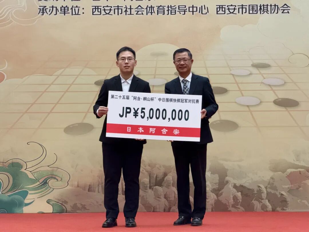 12月26日,第25届中日阿含·桐山杯围棋冠军对抗赛在西安落幕,陈梓健八段中盘战胜一力辽九段,中国棋手一年内取得两次优胜。在25届中日冠军对抗赛中,中国棋手19胜6负领先。赛后举行了颁奖仪式,中国围棋协会主席常昊等为两位棋手颁奖。