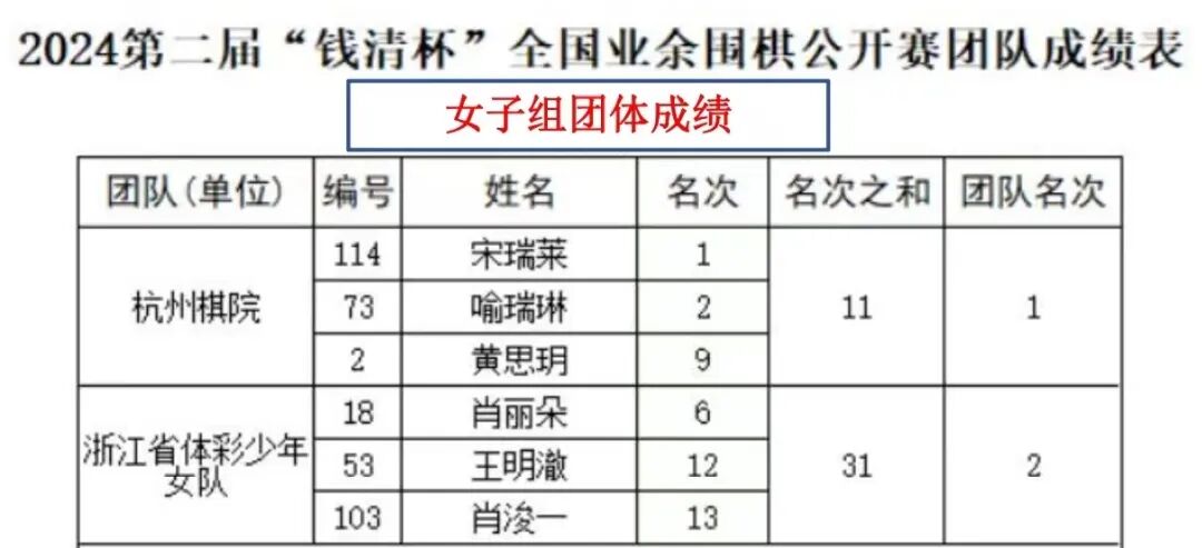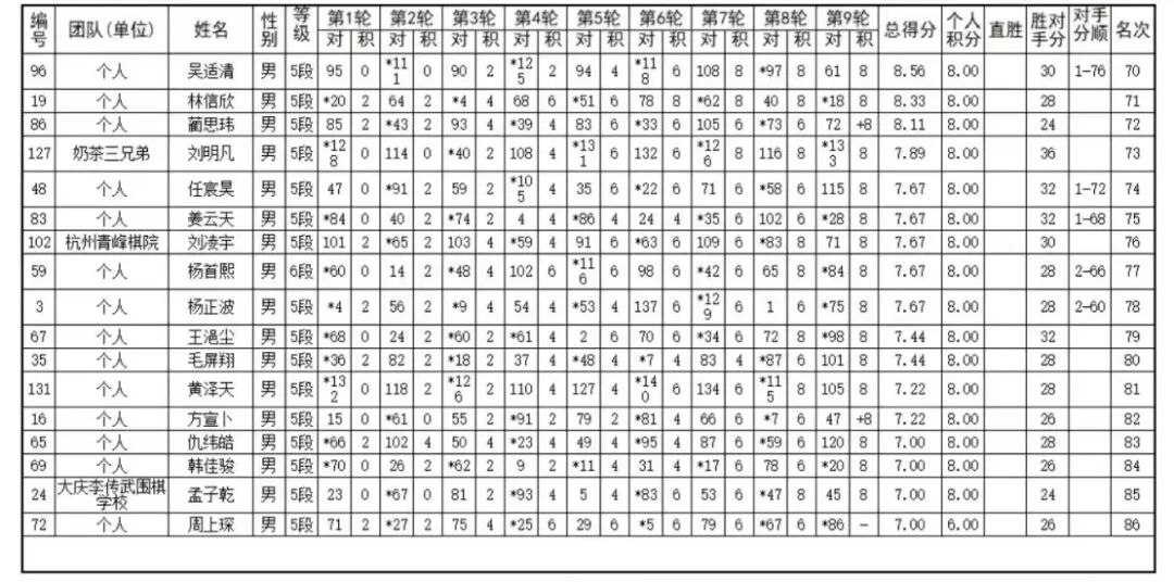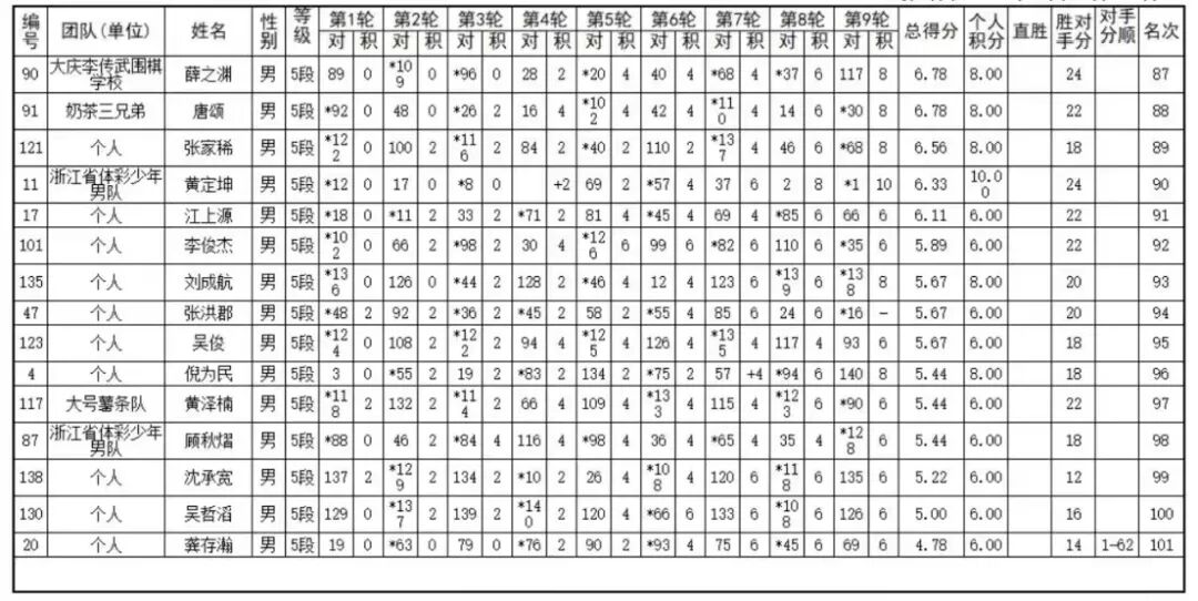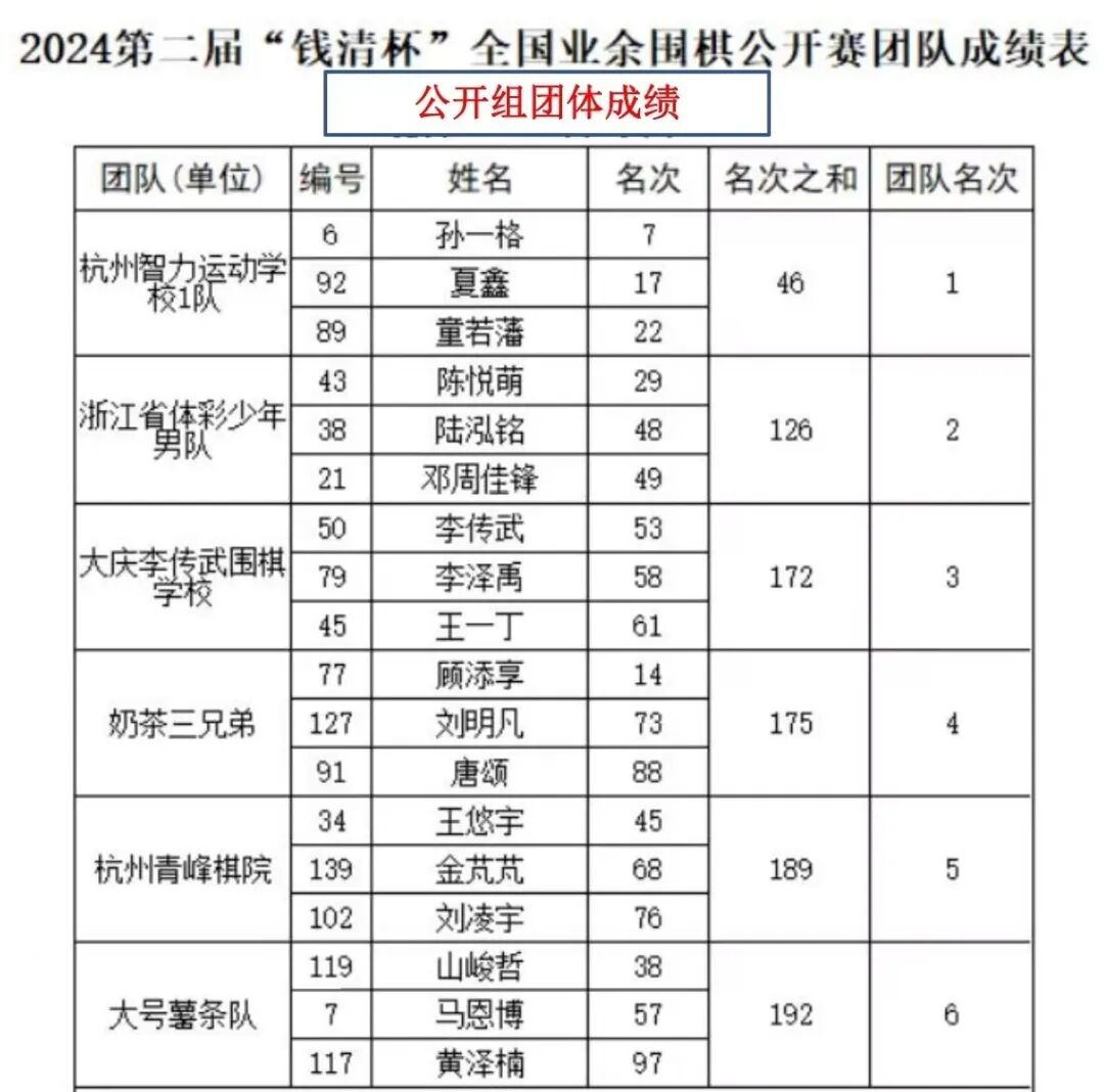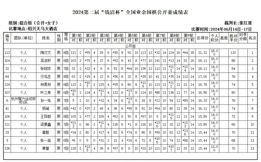 第二届“钱清杯”全国业余围棋公开赛成绩