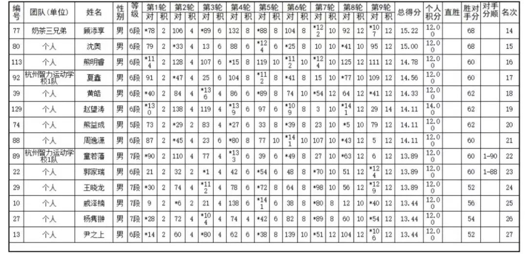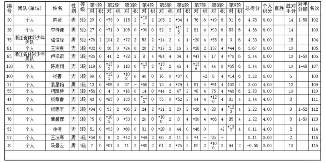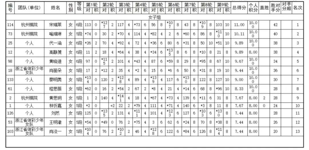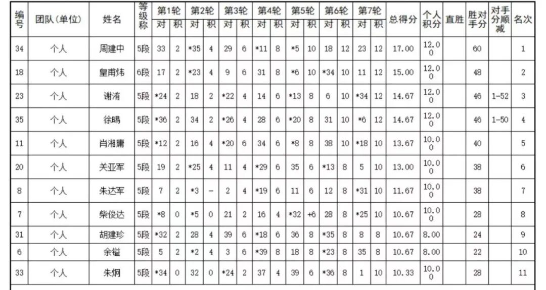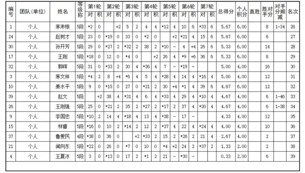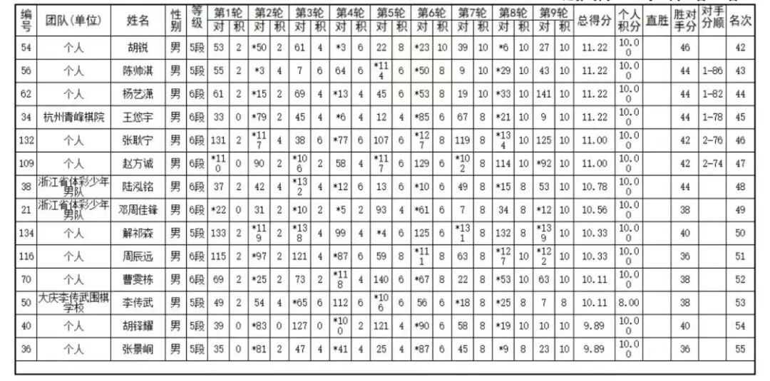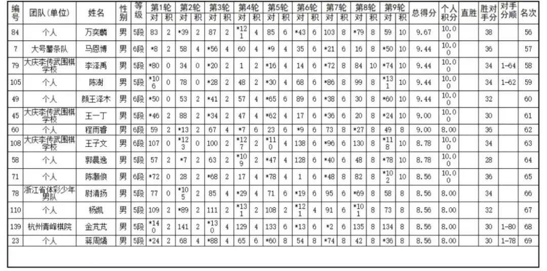 第二届“钱清杯”全国业余围棋公开赛成绩