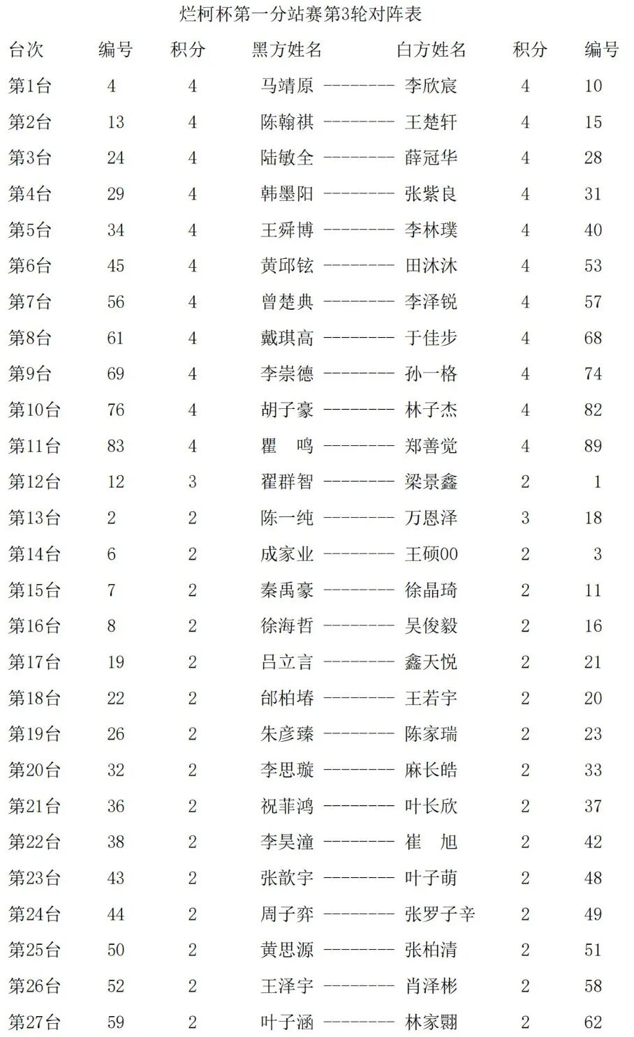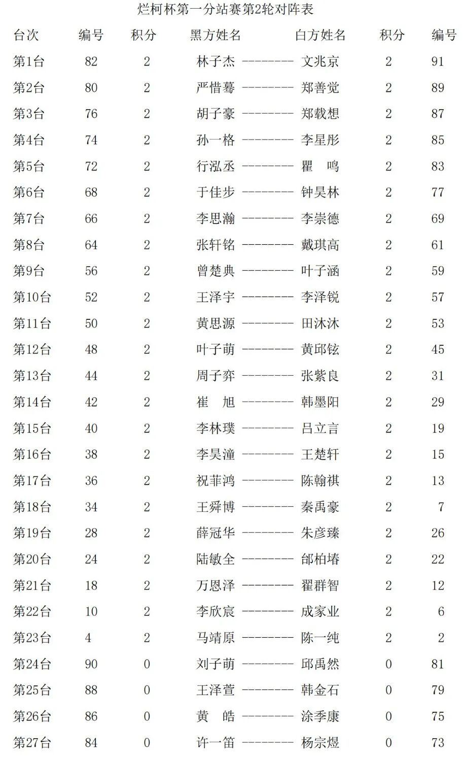 1月19日,第一届“烂柯杯”中国青少年围棋公开赛季度赛第一站在浙江省衢州市开赛,并进行了2轮比赛。薛冠华、陆敏全、陈翰祺等22人获2连胜。明天将举行第3-4轮比赛。第一届“烂柯杯”中国青少年围棋公开赛是中国围棋协会和衢州市体育局创办的新赛事,旨在为中国青少年职业、业余棋手创造更多比赛机会,增加对局数量,培养后备人才。比赛分为季度赛和总决赛两个阶段。符合条件的职业、业余棋手可报名参赛。季度赛共设3站,计划于2025年1月、4月、7月在衢州进行。总决赛计划于2025年10月在衢州进行。季度赛第一站1月19日开赛,23日决出名次。比赛采用积分编排制,男女棋手混合编排,进行9轮比赛。薛冠华、陈豪鑫、陆敏全、王楚轩、胡子豪、叶长欣等84名职业棋手报名参加本站比赛。今天结束的前两轮比赛中,薛冠华、陆敏全、陈翰祺等22人获2连胜。明天将举行第3-4轮比赛。