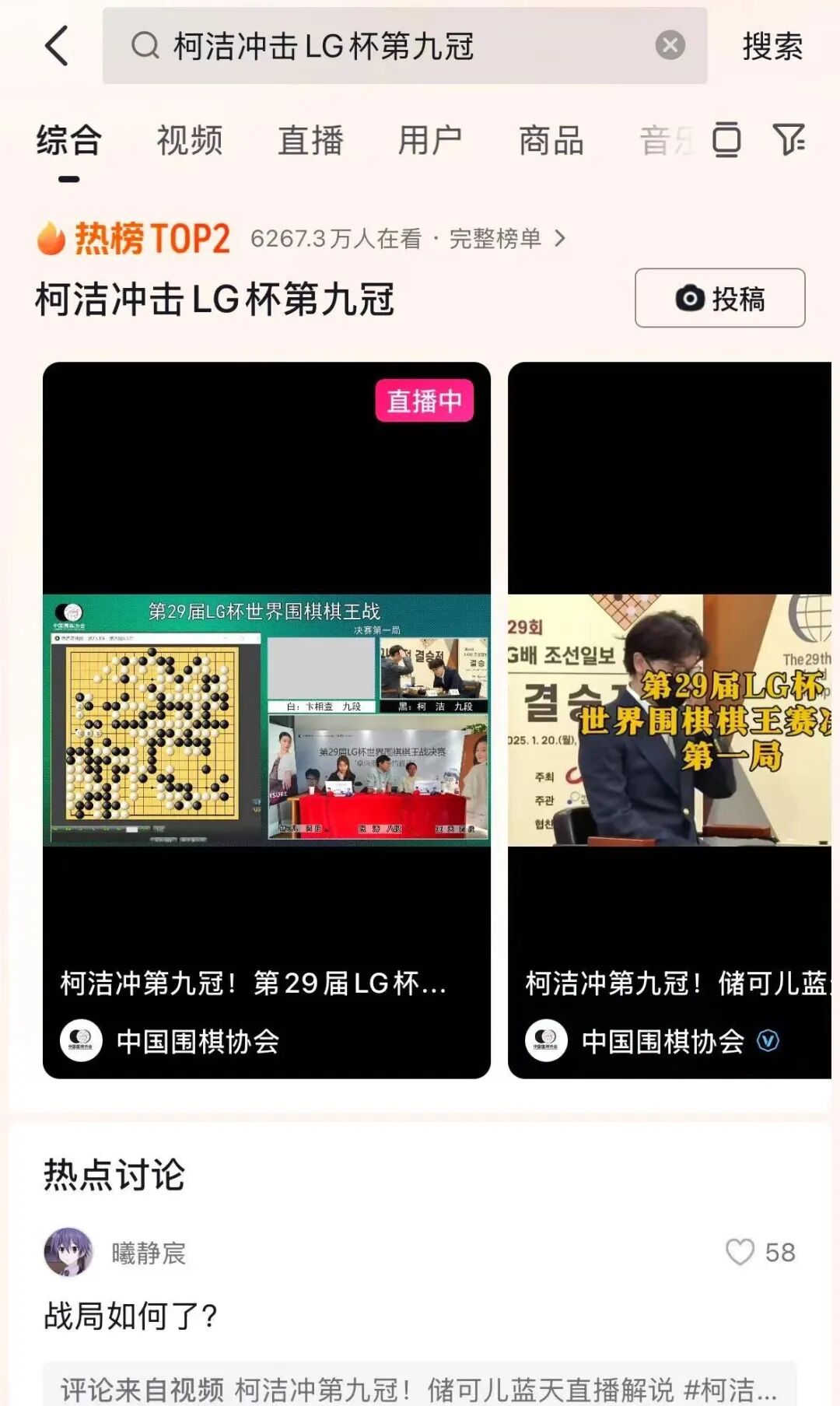 曾经鲜衣怒马的追风少年,春风得意马蹄疾,年年有鱼连下八冠,然而在上次杀进LG杯决赛失手于申旻埈后,时隔近四年才再次征战决赛。世冠常有,而明星不常有。柯洁向着中国独一位的九冠王发起冲锋的时刻,引发极大关注,中国围棋协会在抖音、bilibili、视频号的直播均创造了很高观看量,其中抖音直播更是长时间占据热榜第二位。
